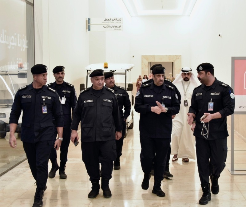 The tour also included a stop at Khairan Mall in the Sabah Al-Ahmad Marine District, where Major General Al-Adwani reviewed safety measures and security arrangements to protect visitors during the holiday.