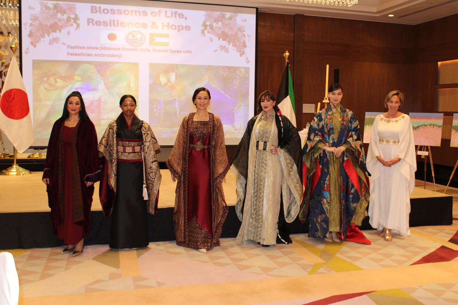 The audience was further captivated by a fashion show featuring a fusion of Kuwaiti, Japanese, and Palestinian attire. Kuwaiti designer Mrs. Sharifa Al Ghanim presented four magnificent kimono-inspired designs incorporating Kuwaiti elements.