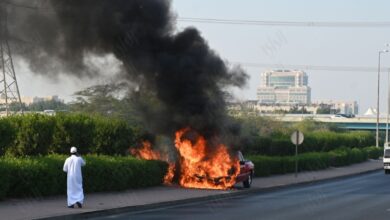 Fire destroys vehicle parked between Al-Rabia and Al-Ardiya Industrial