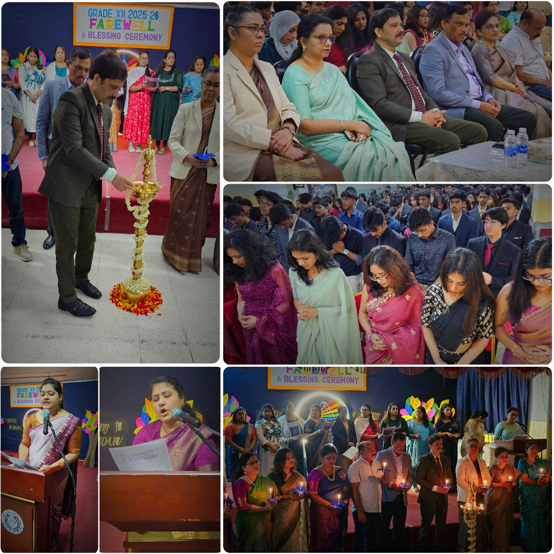 One of the most emotional highlights of the ceremony was the Lighting of the Lamp and Passing of the Torch, led by Senior Vice Principal Mrs. Mary Litty. The symbolic ritual represented the transfer of knowledge and wisdom to the next generation. Accompanied by a blessing song performed by the teacher choir, the moment captured the collective hopes and aspirations of the graduating class.