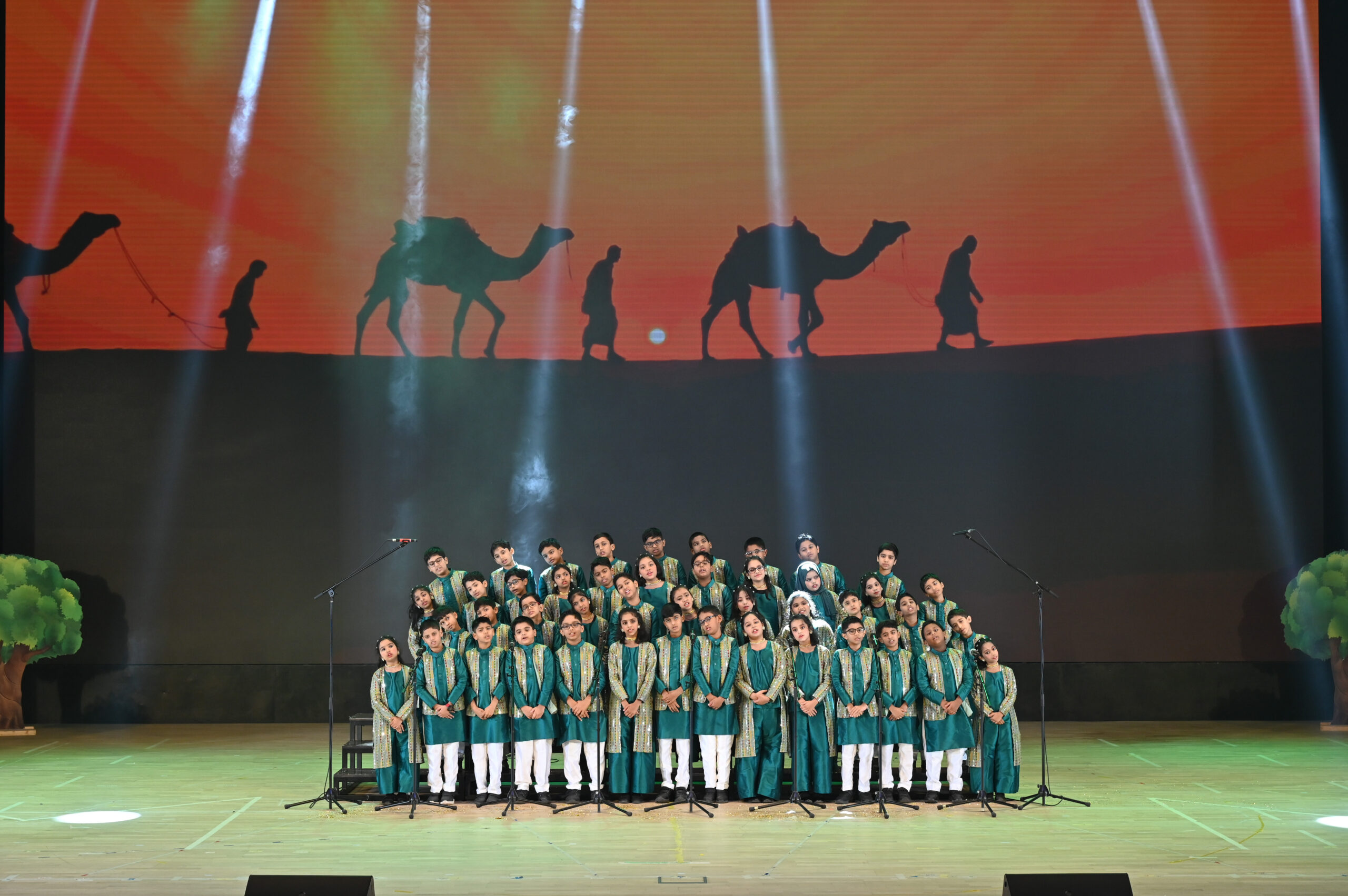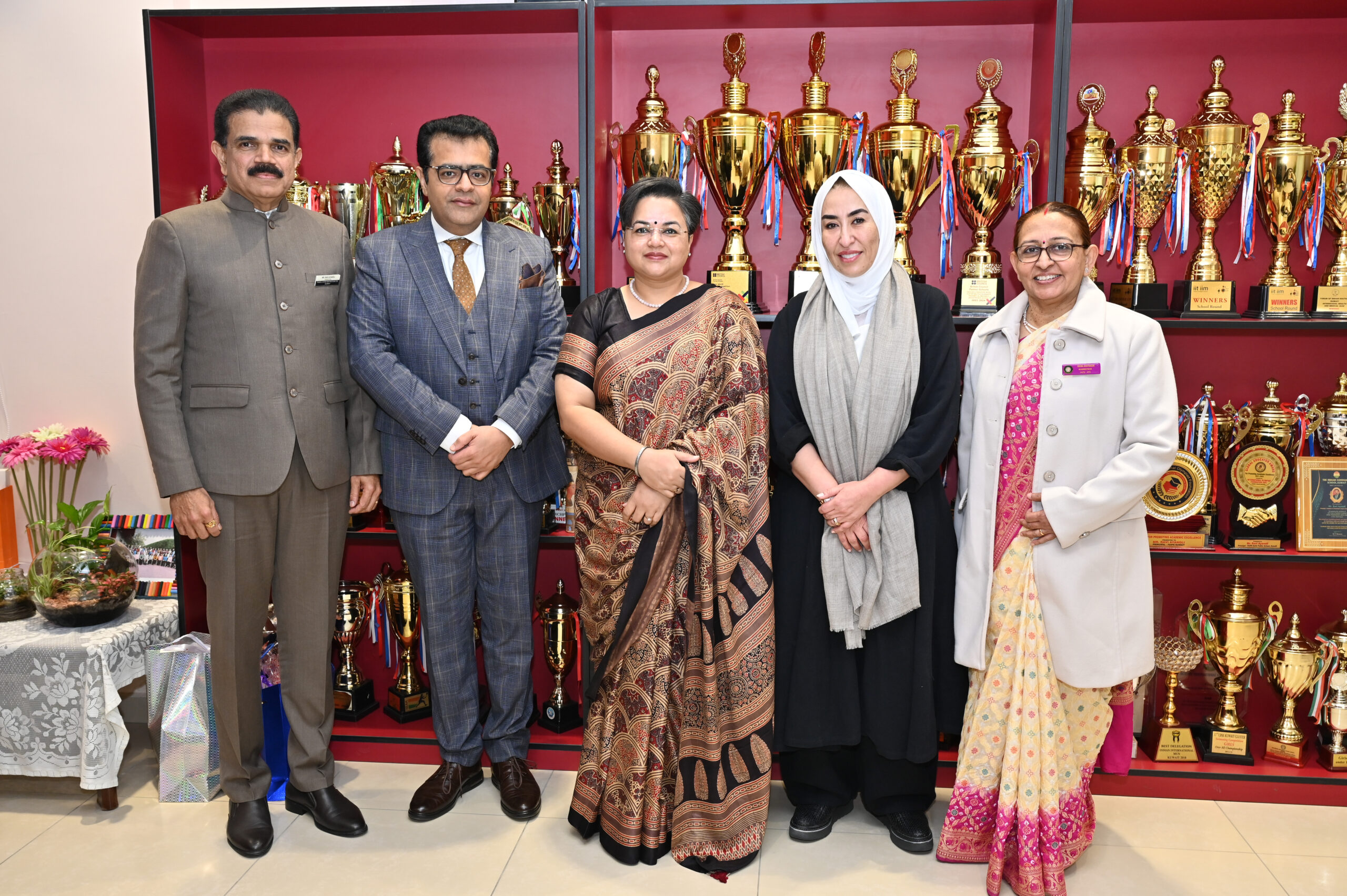 The program began with a salute to the Kuwait National Flag, followed by the Kuwait National Anthem and the ceremonial lighting of the lamp. Principal Ravi Ayanoli warmly welcomed the Chief Guest, Ambassador of India to Kuwait H.E. Paramita Tripathi, along with the Guests of Honor Ms. Lana Othman Al Ayyar, Arun Choudhary and Ms. Mona Al Ajmi, Social and Psychological Supervisor for Foreign Schools at the Ministry of Education.