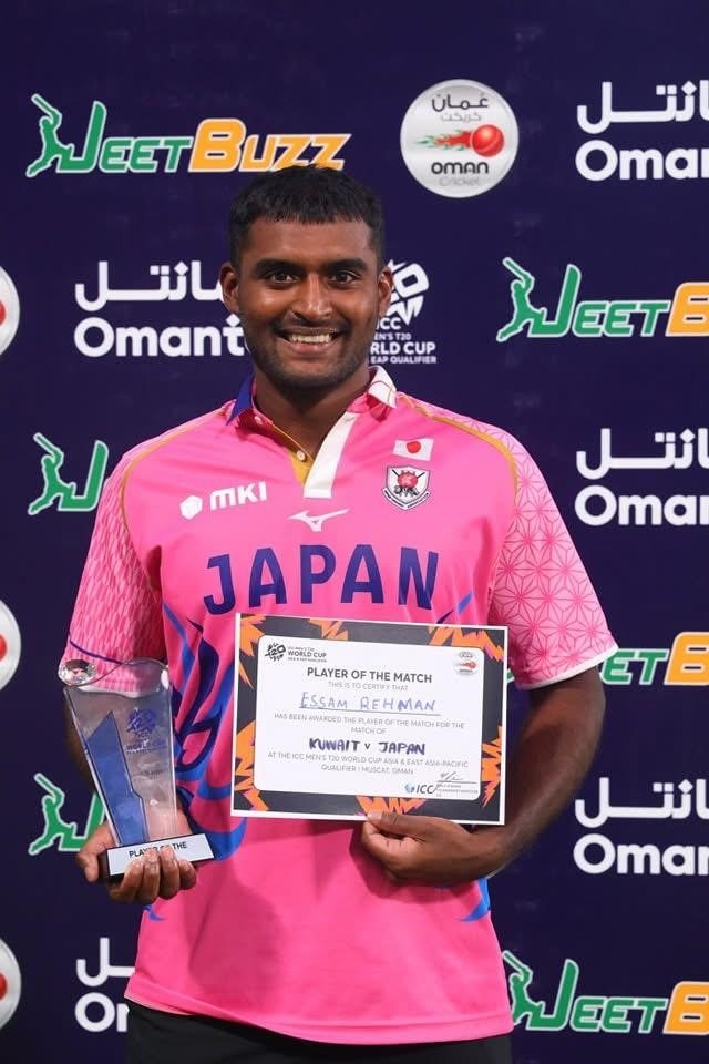 Defending the total, Kuwait fought tooth and nail. Early breakthroughs gave them a glimmer of hope as Muhammad Aqif and Yasin Patel picked up key wickets. However, Japan’s Esam Rahman played a match-defining innings, smashing 64 off just 39 balls, anchoring the chase with powerful strokes all around the ground. Despite a late surge from the Kuwait bowlers and tight spells from Anudeep Chenthamara and Naveen Rajendran, Japan managed to cross the finish line at 178/5 in 19.3 overs.