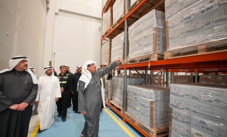 His Highness the Prime Minister Sheikh Ahmad Abdullah Al-Ahmad Al-Sabah, accompanied by Minister of Health Dr. Ahmad Al-Awadhi, on Monday paid an inspection tour of the Health Ministry’s warehouse of medicines and medical supplies.