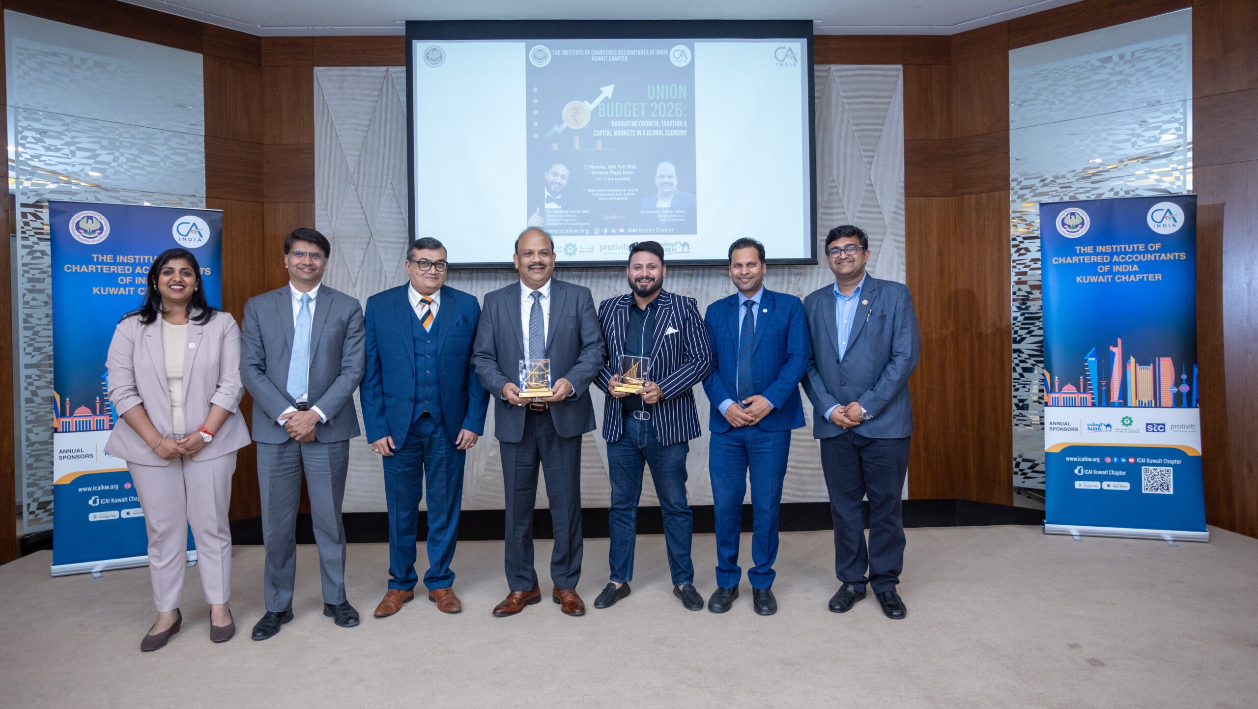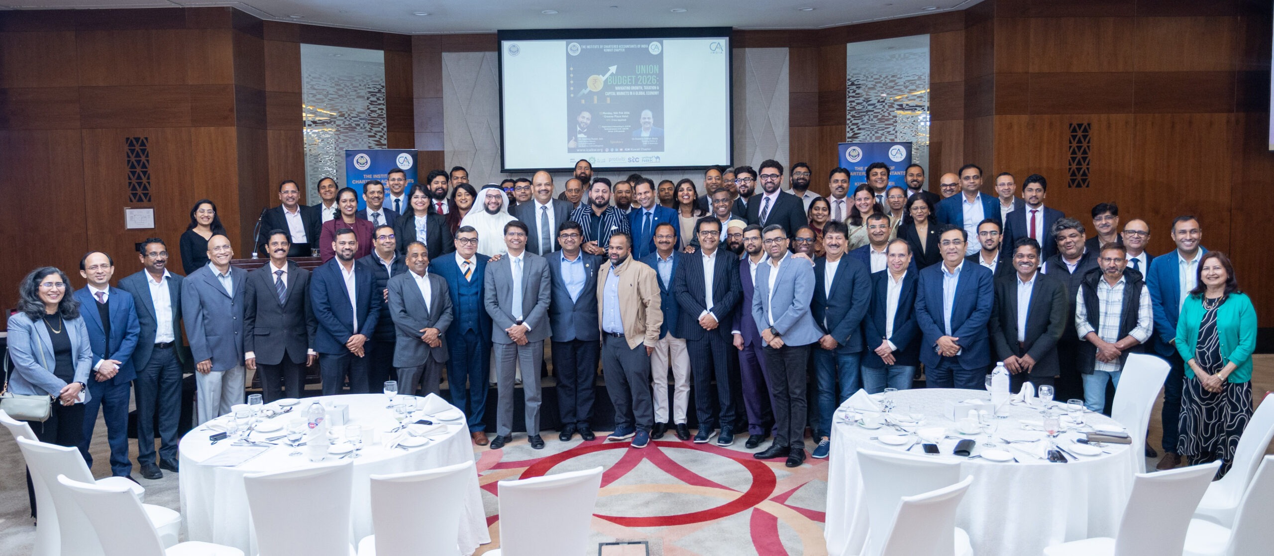 The Institute of Chartered Accountants of India Kuwait Chapter (ICAIKC) organized a Continuing Professional Education (CPE) seminar titled “Union Budget 2026 – Navigating Growth, Taxation and Capital Markets in a Global Economy” on February 16, 2026, at the Crowne Plaza Kuwait. The event brought together members of the accounting fraternity for an in-depth review of the latest budget announcements and their economic implications.
