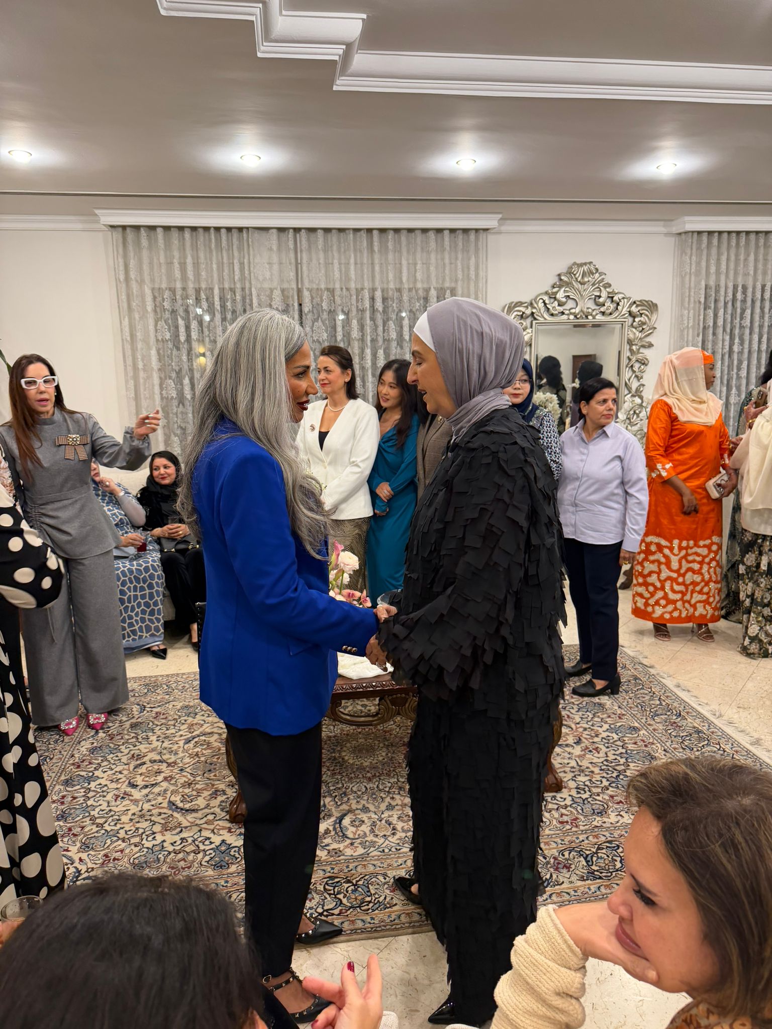 Mrs. Rana Abu Shakra, spouse of the Jordanian Ambassador to the State of Kuwait, H.E. Sinan Al-Majali, hosted a reception in honor of Mrs. Lana Al-Ayyar, spouse of His Excellency the Minister of Foreign Affairs, Mr. Abdullah Al-Yahya, and Honorary President of the International Diplomatic Club in Kuwait.