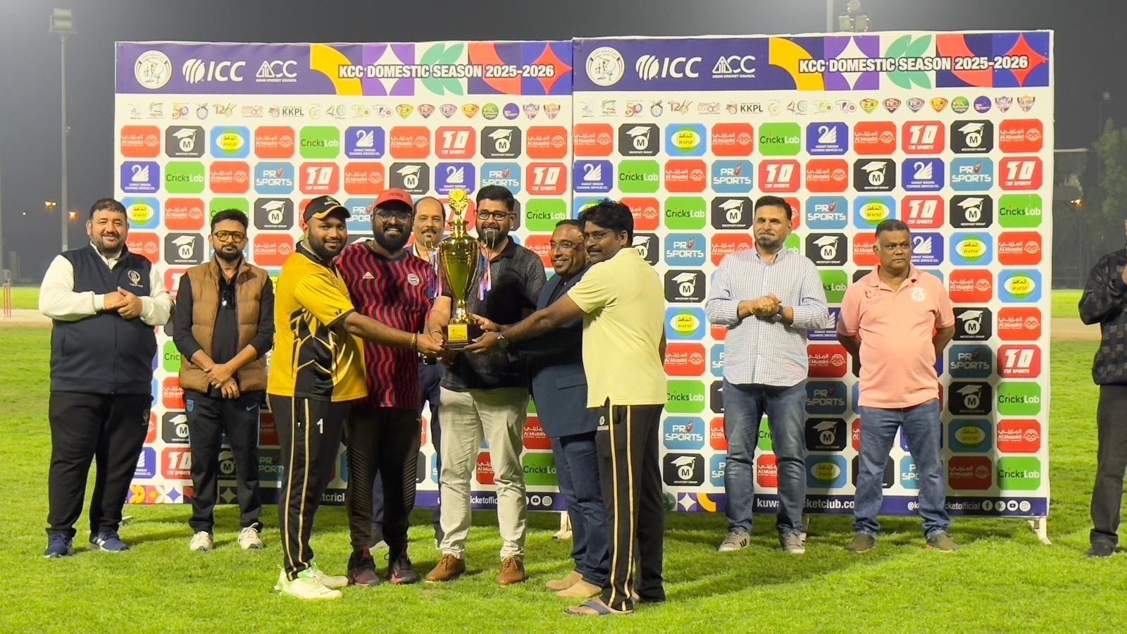 The presentation ceremony was graced by Robert (Head of Operations, KCC), Melwyn (Head of Broadcasting & Domestic, KCC), Naveen (Head of Match Officials & Technical, KCC), Kabir Khan (GM High Performance & Technical), Tahir Khan (Venue Manager & Juniors Head Coach, KCC), Guruprasad (Head of Operations, Al Muzaini Exchange), and Vipin Mathew (Business Development Manager, Al Muzaini Exchange).