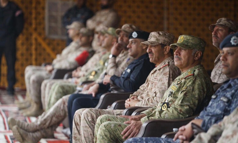The Chief of the General Staff of the Kuwaiti Armed Forces, Lieutenant General Khaled Al-Shuraian, Undersecretary of the Ministry of Interior Major General Abdulwahab Al-Waheeb, and Undersecretary of the Kuwait National Guard (KNG) Lieutenant General Hamad Al-Barjas attended on Wednesday the conclusion of the joint exercise “Raiyat Watan.” It was held with the participation of the Kuwaiti Army, Ministry of Interior, and the National Guard.