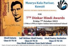 After a gap of two years, Maurya Kala Parisar, Kuwait is back with 7th Edition of Dinkar Hindi Awards to be held...