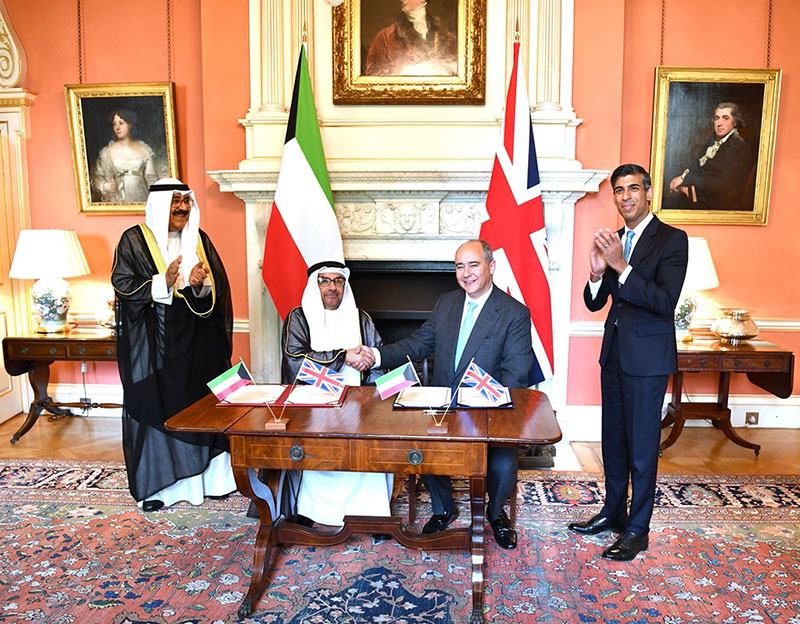 The signing ceremony was attended by His Highness the Crown Prince and British Prime Minister Rishi Sunak.The deal was co-signed by Dr. Saad Al-Barak, alongside British Minister of State in the Department for Business and Trade Lord Dominic Johnson.The ceremony was attended by Kuwait’s foreign affairs minister and a host of senior Kuwaiti diplomats and foreign ministry officials.
