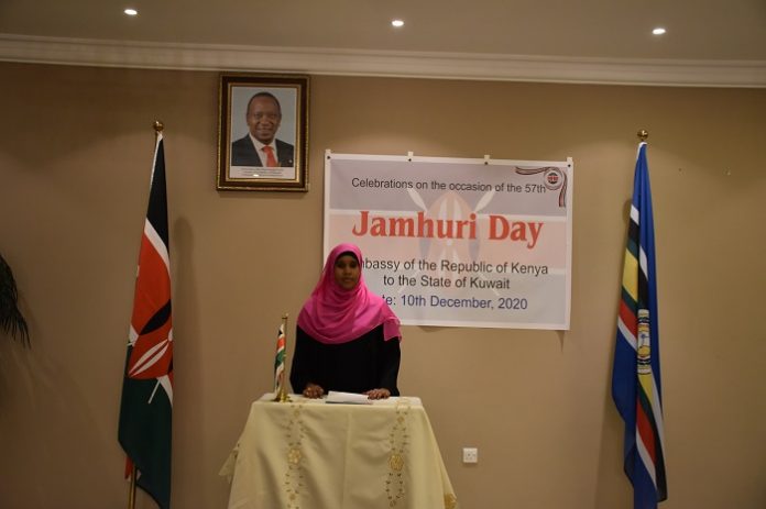 In a speech before a select gathering at her residence, to mark Kenya’s National Day (Jamhuri Day) on 10 December, Kenyan Ambassador H.E. Halima Mohamud praised the strong bilateral relations between Kenya and Kuwait.