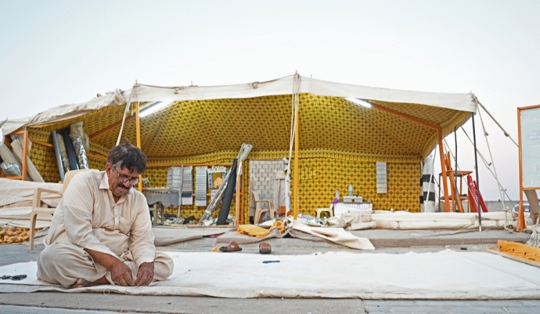Arshad, one of the sellers, explained that Pakistani tents come in two main varieties — the traditional Pakistani fabric and the “Subh” fabric, which is more durable and provides better thermal insulation but costs nearly twice as much.